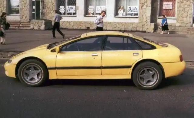 №2 Вторая самоделка сделана на той же базе от Волги, только ещё пристроены двери от 2109. От прежнего Опеля (того же) остались капот, крыша и крышка багажника. Фары и стопы по-прежнему от 2108. Колёса от американца и диски от УАЗа с перевареными тарелками. Формы кузова навеяны Ауди-бочка 80.