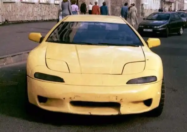 №3 Третий вариант - модернизация на той же базе. Капот, крышка багажника и крыша (сильно переделанная) от Опеля(прежнего). Из пластика сделаны новые бамперы. Двери от ВАЗ-2109 с переделанными боковыми стёклами. Форма кузова приближена к спортивной и фары уже выдвижные.