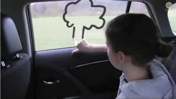 Если задние боковые стёкла машины оснастить прозрачным сенсорным экраном, скучающим детишкам будет чем заняться.)