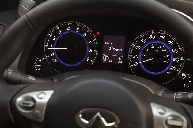 Новый автомобиль позаимствовал у концепт-кара Infiniti Essence фирменную решетку радиатора, которая выделяется неестественной «гримасой». Дизайнеры также придали фарам более острый «взгляд». Внутри салона сменилась, пожалуй, только подсветка — вместо красной она стала лунно-белой.