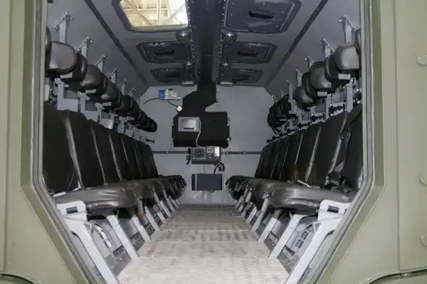 По требованию Министерства обороны бронированный функциональный модуль вмещает 16 человек. На каждом сиденье (подвесная система обеспечивает его крепление к крыше автомобиля для большей противоминной стойкости) имеются ремни безопасности, подголовники (для фиксации головы в случае подрыва). Имеются держатели для личного оружия. Рюкзаки, вещмешки размещаются за сиденьями, также в салоне можно перевозить некоторые грузы, например палатку. При обстреле машины подголовники можно снять и вести огонь через бойницы. На случай применения оружия массового поражения обеспечение пригодным для дыхания воздухом обеспечивается фильтровентиляционной установкой ФВУА-100А. И в кабине, и в бронированном модуле установлен кондиционер. Возможна установка дистанционно управляемого пулеметного модуля, которым посредством пульта и изображения с видеокамер будет управлять стрелок. Вход в бронированный модуль возможен как через дверь, так и через откидывающуюся аппарель. На крыше предусмотрены эвакуационные люки, в случае опрокидывания машины.
