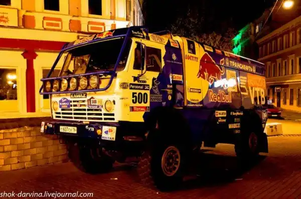 Конечно же, начинка гоночного КАМАЗа отличается от обычного, да и мощностью он может похвастать, смотрите:
