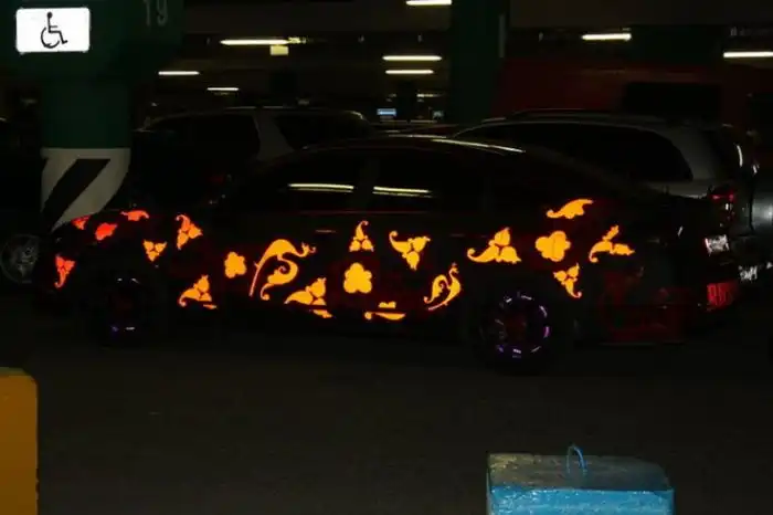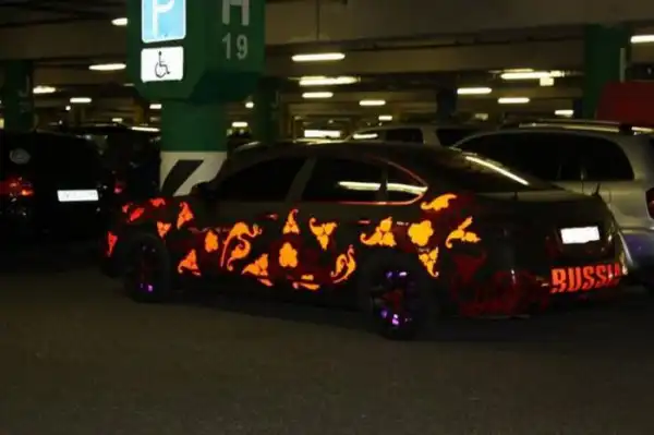 Круто смотрится, особенно ночью.Наверное, парень патриот, вот только для чего было писать Россия на английском?