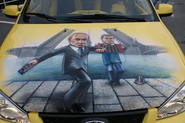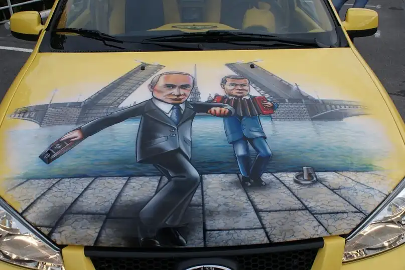 рядом с кремлем (левая задняя дверь) не пойму кто с баяном? ВВП или ДАМ?