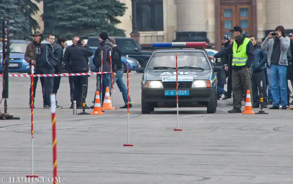 Прохладным субботним утром на центральной площади города начали подъезжать автомобили ГАИ Украины. Нет, никаких ЧП в городе не произошло и в городе не ожидался приезд первых лиц – сотрудники ГАИ приехали сравнить свое мастерство вождения с харьковскими спортсменами.