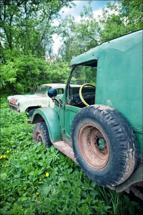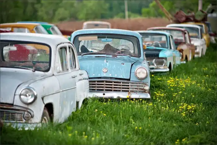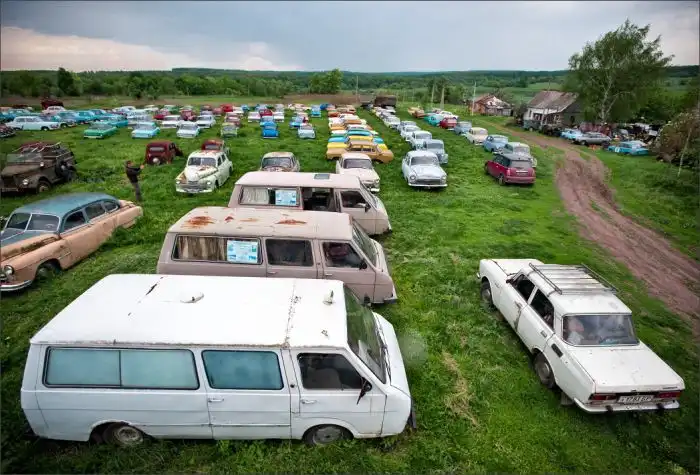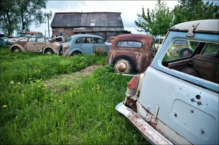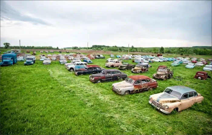 В его коллекции под открытом небом хранится множество марок и моделей авто,