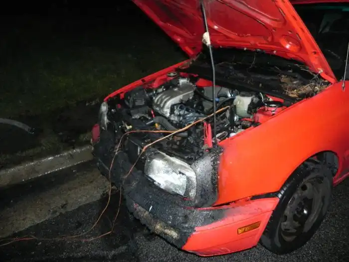 Подогнали машину, открыли капоты и.... случайно соединили минус с плюсом.