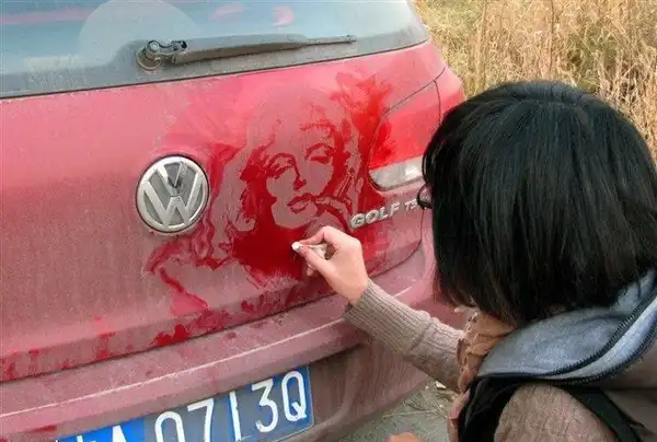 Просто надо научиться рисовать на грязи и тогда можно превратить свое транспортное средство в произведение искусства.