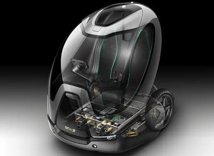 GM создал концепт нового экологического транспорта EN-V. Автомобиль работает на электрических литий-ионных аккумуляторах. Заряда хватает примерно на 25 миль. Особенность этого транспортного средства в том, что оно двухколесное.