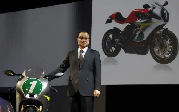 Концептуальный автомобиль «RC-E» представляет президент компании Honda Motor Co. Таканобу Ито.