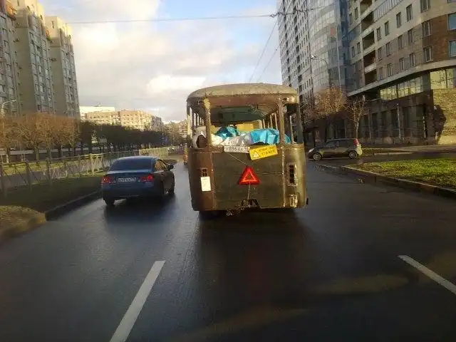 Приехал тягач. Я сзади прикрываю на случай если вдруг запчасти посыпятся.