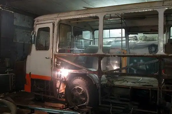 Три года назад, наигравшись в машинки, мы с товарищем стали замечать, что с улиц нашего города окончательно и бесповоротно исчезли старенькие круглые автобусы ЛиАЗ 677. Он же луноход, он же скотовоз. Не долго думая (то есть конечно долго) мой товарищ нашел такой автобус в городе Владимир, купил его и перегнал в Питер. Сразу же заразил этим делом и меня. И вот не много покатавшись и скопив силы мы начали его кузовной ремонт.