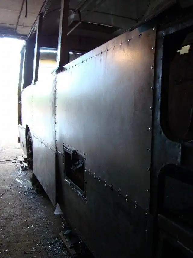 Вернемся к нашему "скотовозику". Обшивку за лето закончили, но осенью нас ждал не приятный сюрприз. Вновь подражала аренда. Пришлось переезжать опять. Сегодня состоялся сей сложный момент. Машину перегоняли уже довольно далеко. Почти пол города. Ехали на жесткой сцепке типа труба(это значит,что автобусом придется рулить). Без гидроусилителя в кабине без дверей и лобовых стекол...это просто песня.
