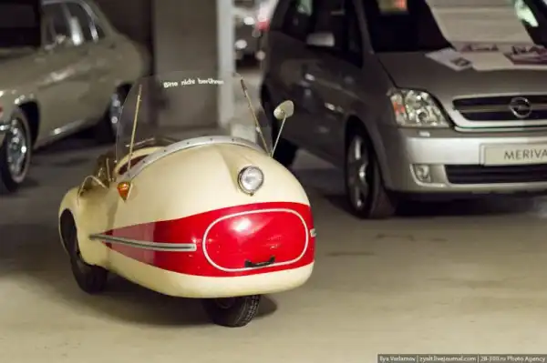 Brütsch Mopetta 1956-1958. Этот одноместный трехколесный автомобиль оснащался одноцилиндровым двигателем объемом 49 кубических сантиметров. Максимальная скорость – 45 км/ч. Было произведено всего 14 мащин. Производством по лицензии занимался один из дилеров марки – Георг фон Опель.