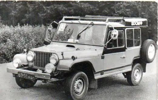 Привод всех колес – постоянный, в трансмиссии имелся блокируемый межосевой дифференциал. Крыша и боковины снимались, позволяя легко превратить джип в пикап, планировалась также версия и с мягким верхом. Задняя дверь машины была выполнена из двух секций – верхней и нижней, запасное колесо и набор инструментов размещались в нишах под передними сиденьями, таким образом полностью освобождая багажный отсек. Но по непонятным причинам не был выбран ни один вариант машины, а через год стало совсем уж не до прототипов.