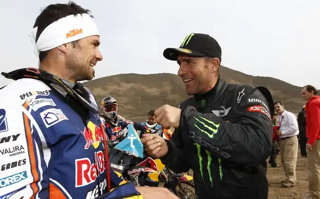 Победители двух самых престижных классов «Дакара»: мотоциклист Сирил Депре (слева) и автогонщик Стефан Петрансель (справа)
