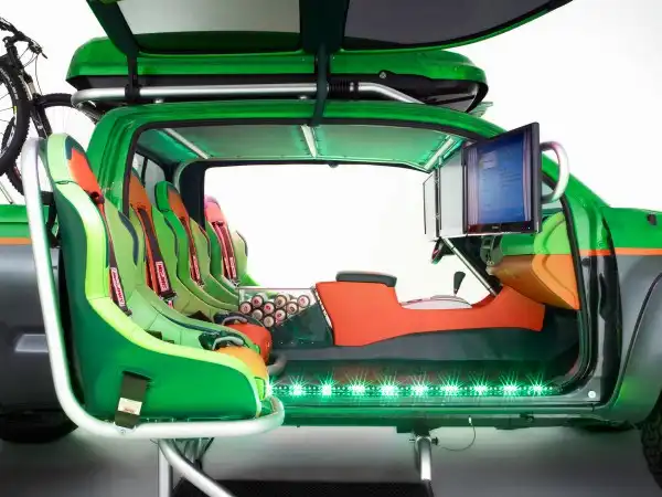 Дополнительные внутренние модификации включают в себя четыре внедорожных спортивных сидения Simpson имеющие 4х точечные ремни безопасности, а так же маленький холодильник под энергетические напитки.