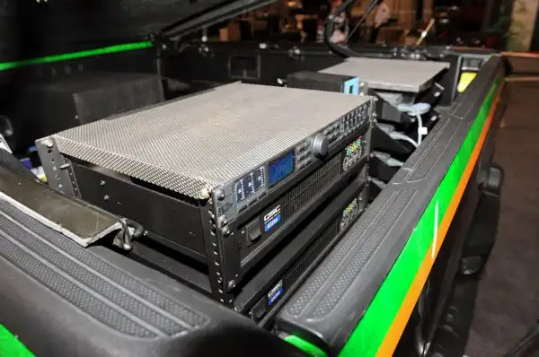 Игровая система Xbox, дополнена "кастом" системой Kicker, обеспечивающей высочайшие ощущения от игр. Система в общей сложности генерирует 2150 Вт звука студийного качества. Непередаваемые ощущения геймерам подарит 12 дюймовый сабвуфер Kicker Solobaric L7-12 с направленным потоком воздуха прямиком в кабину. Для услаждения игроков так же установлены 6.5 дюймовых Kicker QS65.2 дающих в суммарной мощности 650 вт. Головное устройство Alpine IVA-W505 с сенсорным экраном, Kicker KQ5 предусилитель-эквалайзер, Behringer DCX2496 кроссовер, QSC CX702 1500 Вт усилитель для сабвуфера, два QSC CX302 325 Вт усилитель для средних частот.
