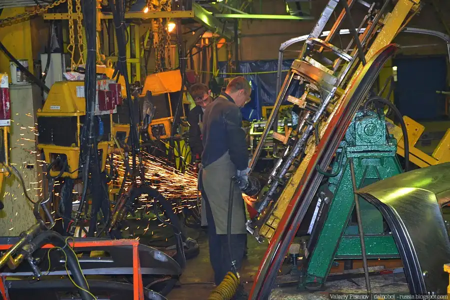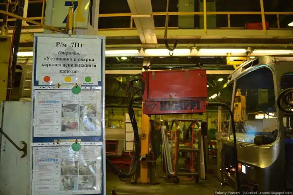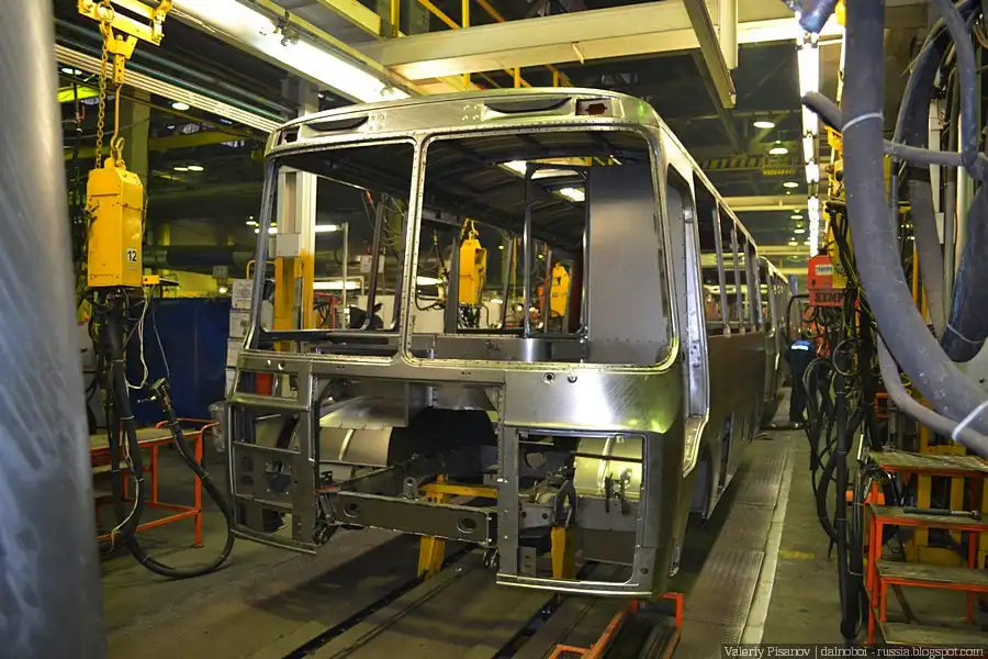 Наша экскурсия по заводу началась со сварочного цеха, где и происходит рождение кузова автобуса