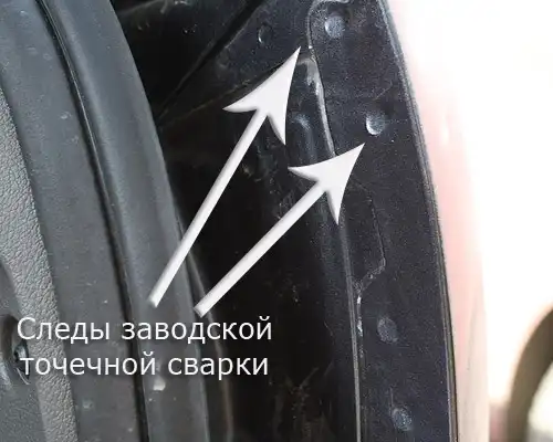 Если в каком-то месте вы не обнаружили следов точечной сварки, хотя с другой стороны автомобиля они есть, скорее всего, машина подвергалась серьезному ремонту.