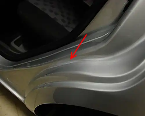 4.В подозрительны местах при взгляде вдоль поверхности определяем наличие шагрени. (микронеровностей ЛКП), проверяем, не «играет» ли поверхность на свету.