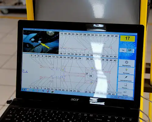 Процесс несложный: на экране ноутбука мастеру высвечивается подсказка с фотографией следующей точки для измерения, он касается ее щупом с острым наконечником, и система определяет положение точки в системе координат, привязанной к автомобилю. Затем координаты сравниваются с базой данной, и делается вывод о том, нуждается ли геометрия кузова в коррекции. Вообще это оборудование используется при ремонте тяжело поврежденных машин, и компьютер попутно выдает подсказки, в какую сторону и насколько тянуть кузов. Но можно задействовать его и для диагностики целых на вид машин: стоимость составляет порядка 4000 рублей.