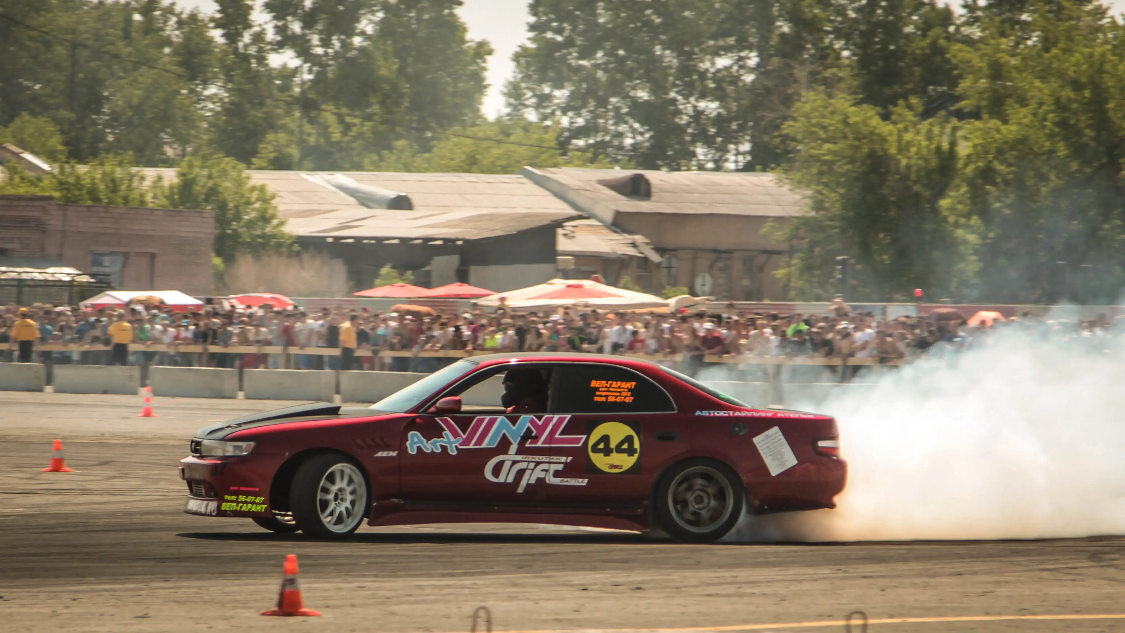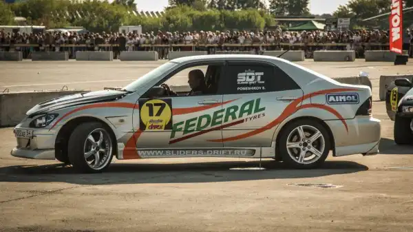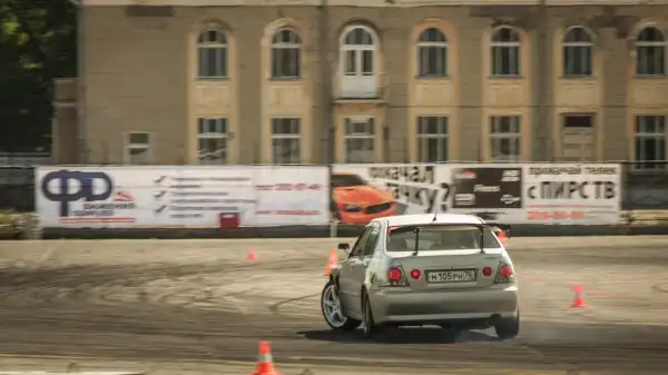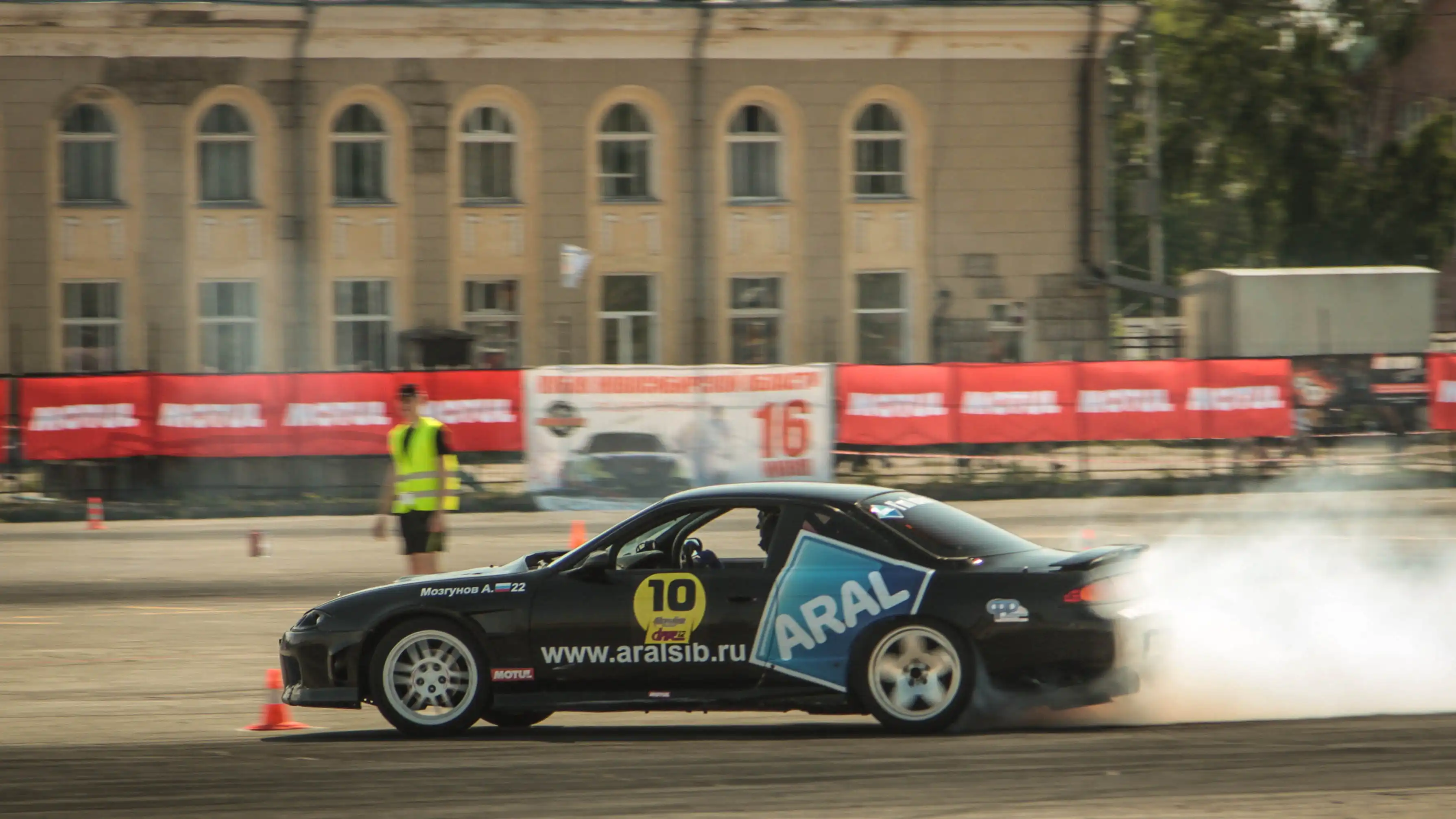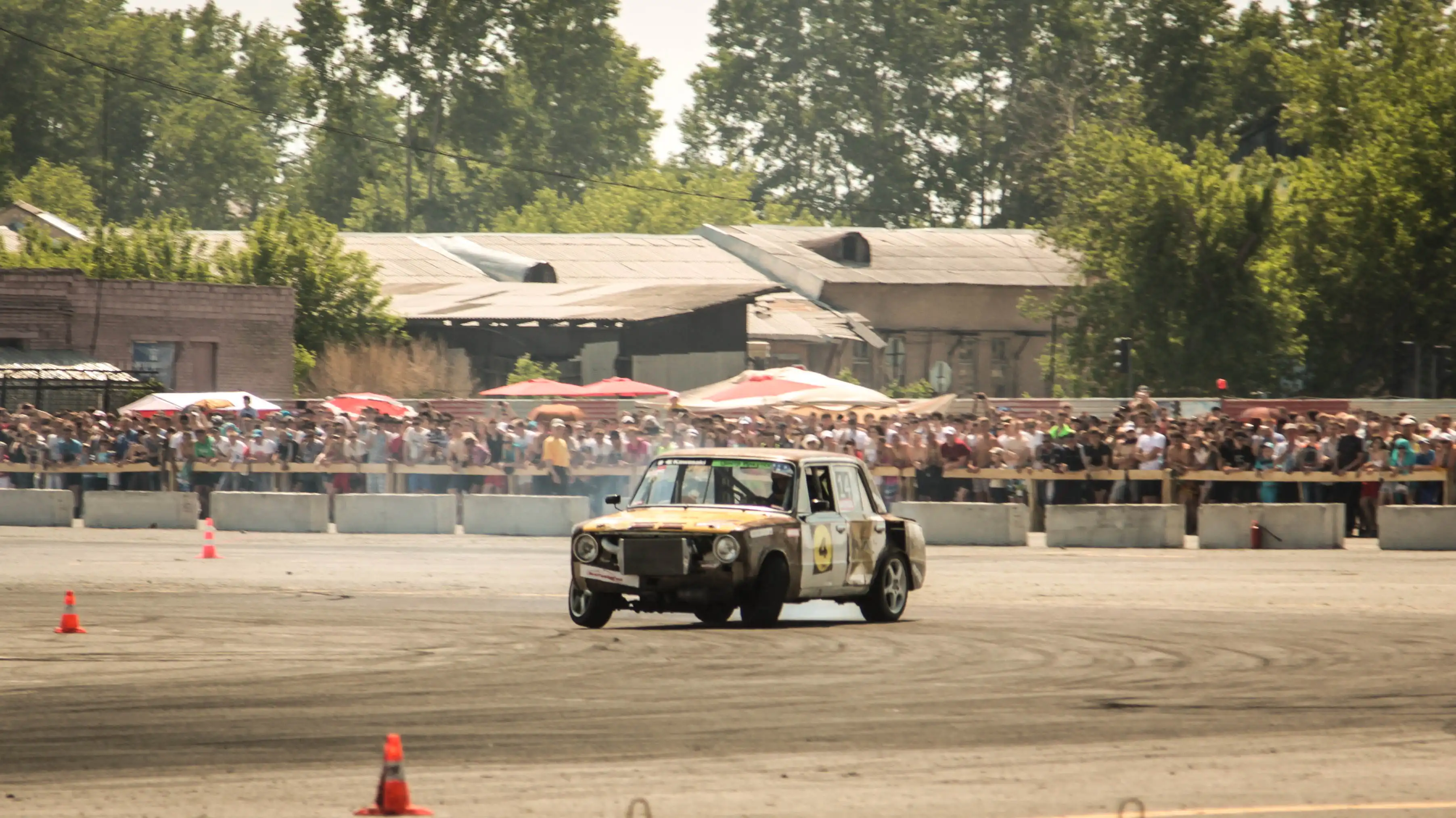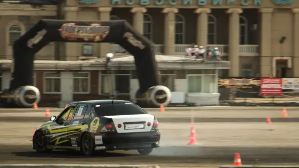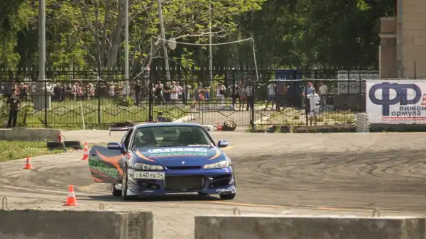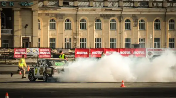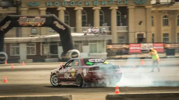 Новосибирский пилот, выезжал первый раз чтоли (непомню точно) Сток мотор/подвеска/коробка, выдернут салон и поставлен вварной каркас. Дрифт тихий, угол небольшой, но ехал стабильно! Молодец!