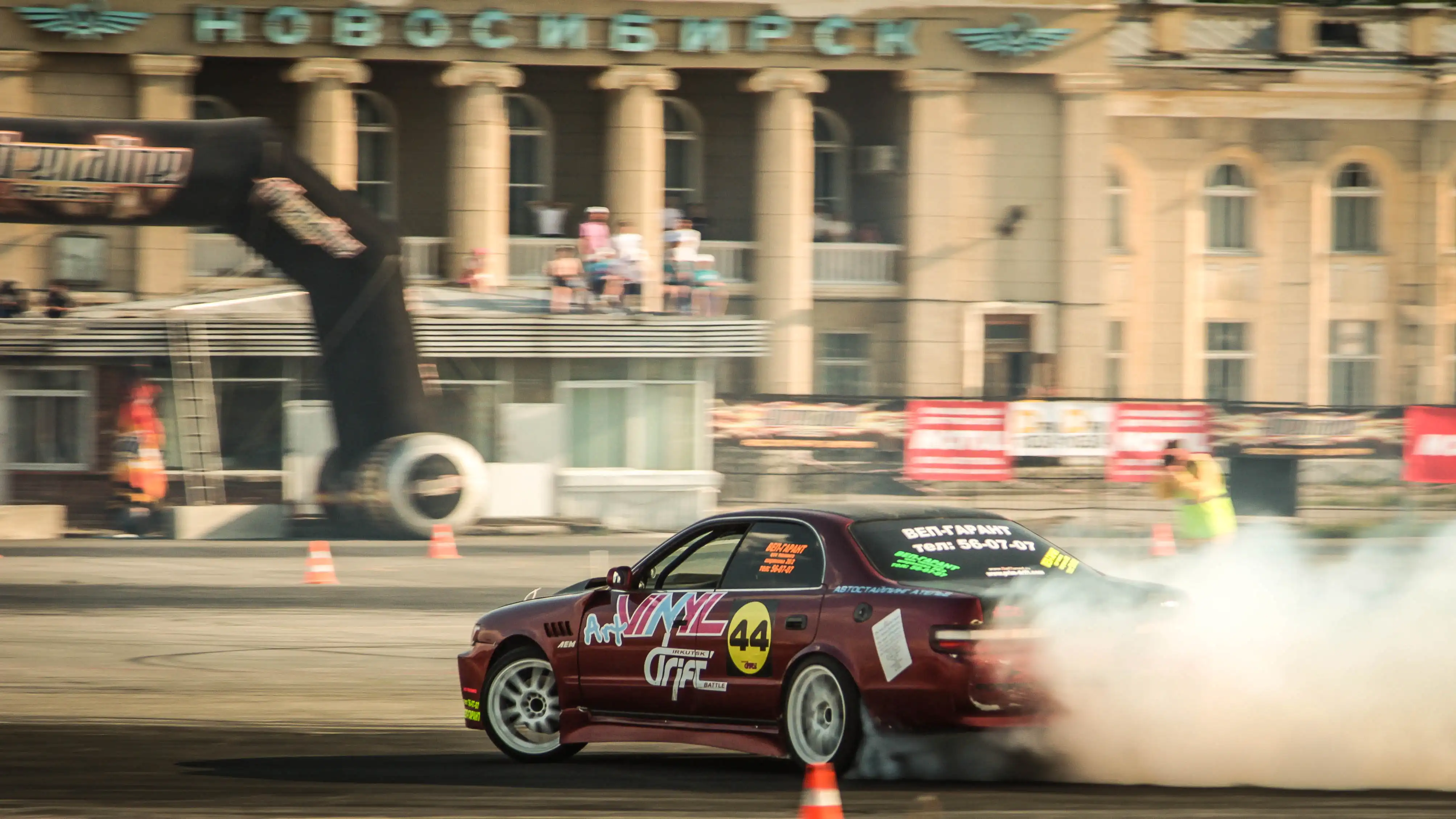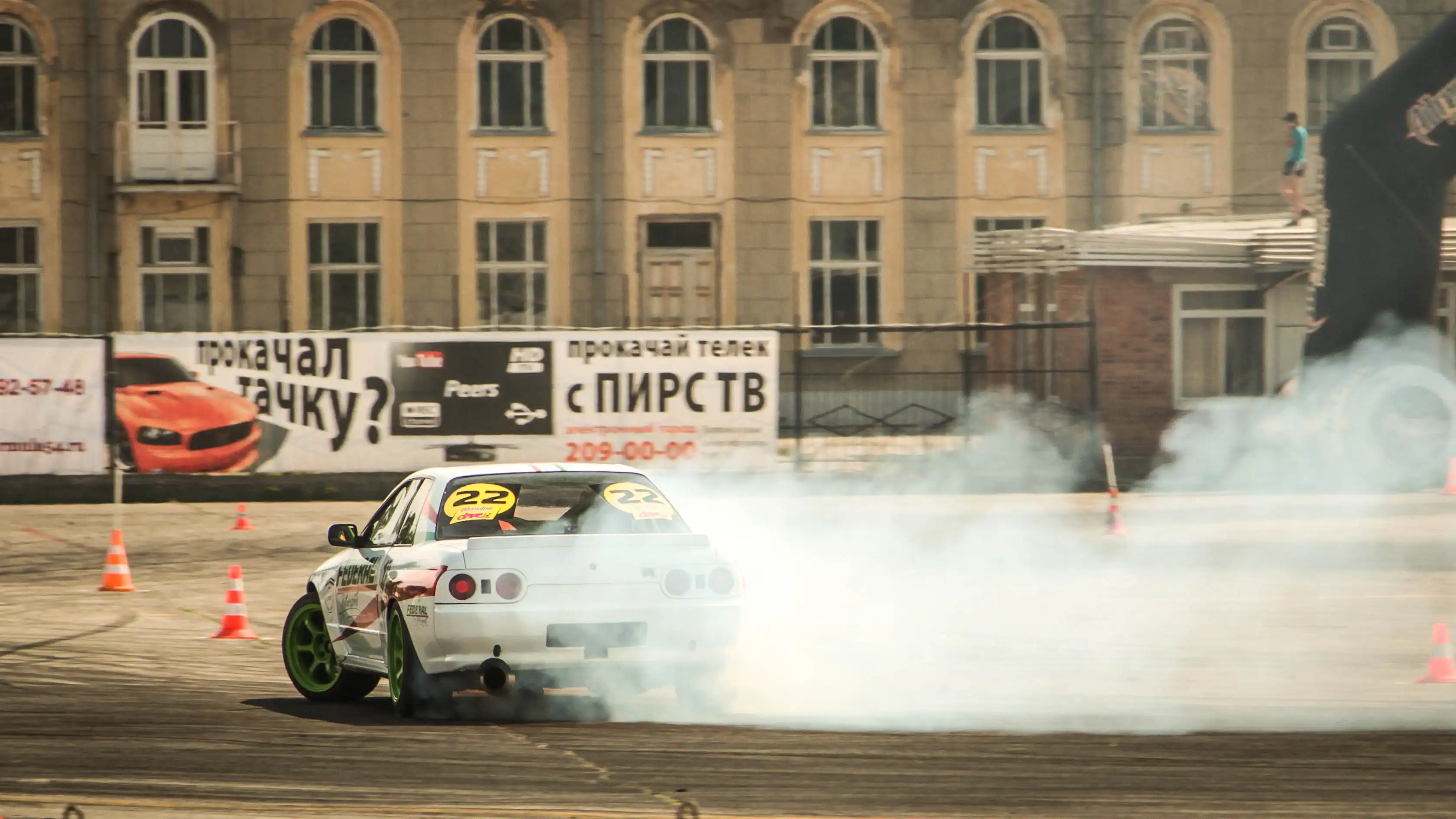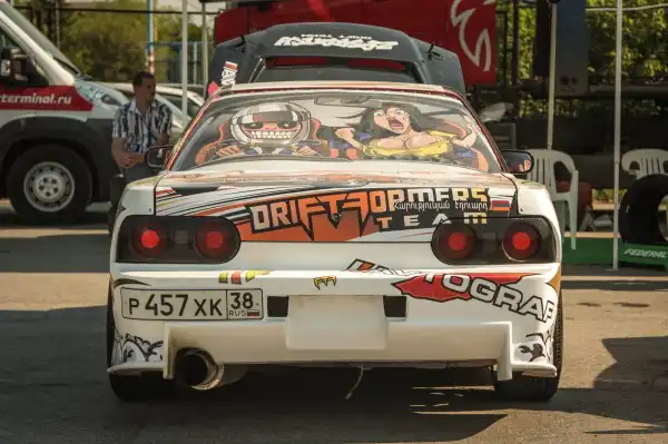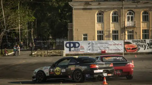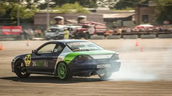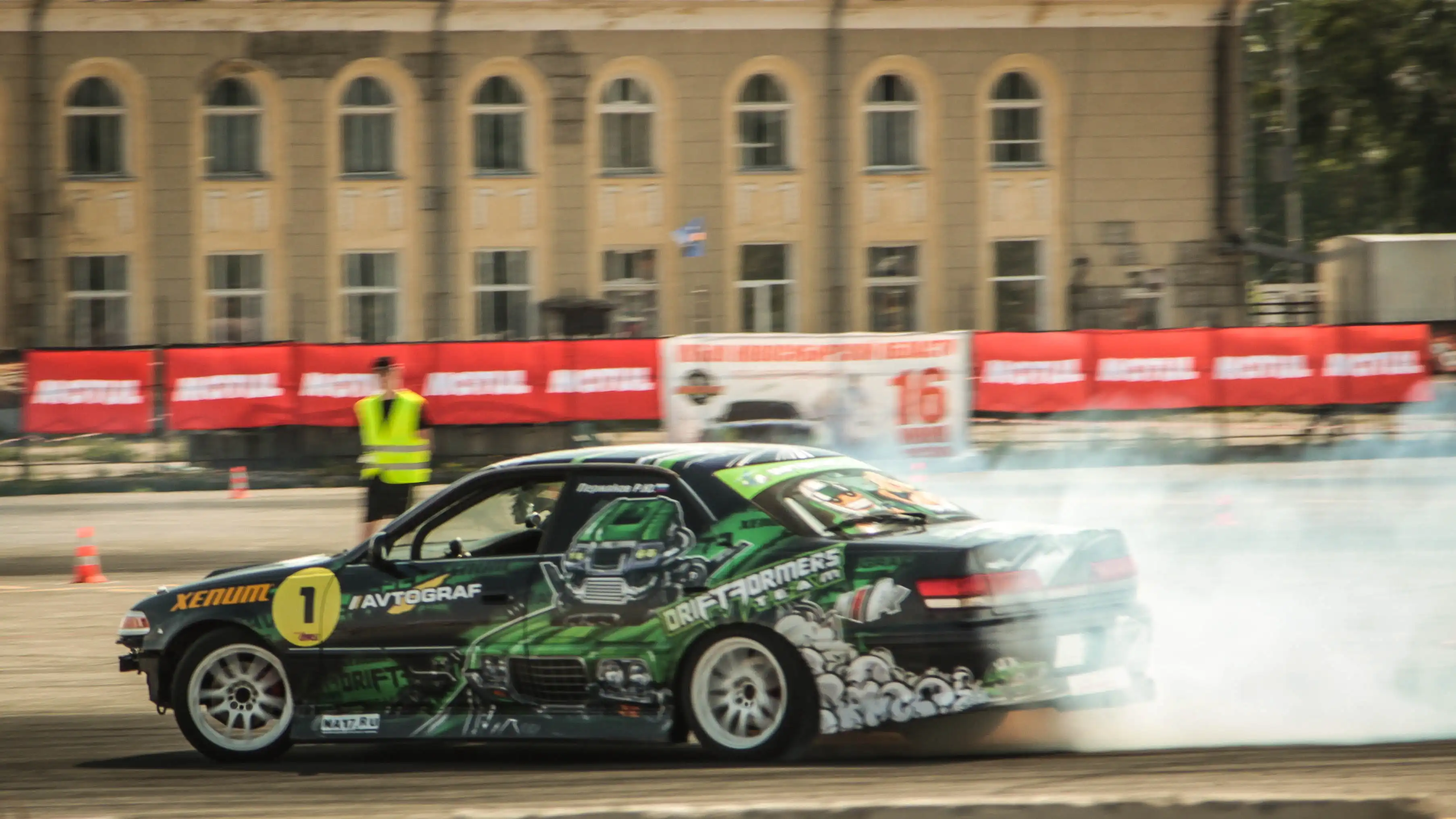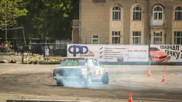 Новосибирский пилот, выезжал первый раз чтоли (непомню точно) Сток мотор/подвеска/коробка, выдернут салон и поставлен вварной каркас. Дрифт тихий, угол небольшой, но ехал стабильно! Молодец!