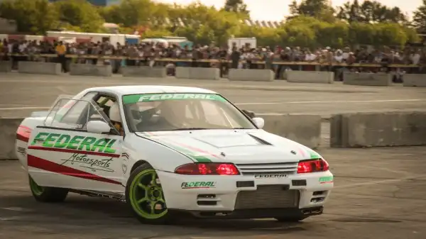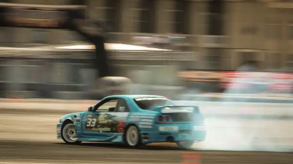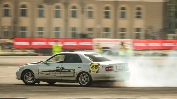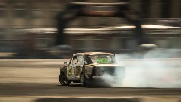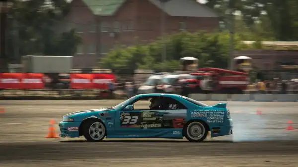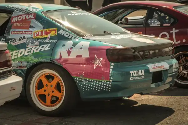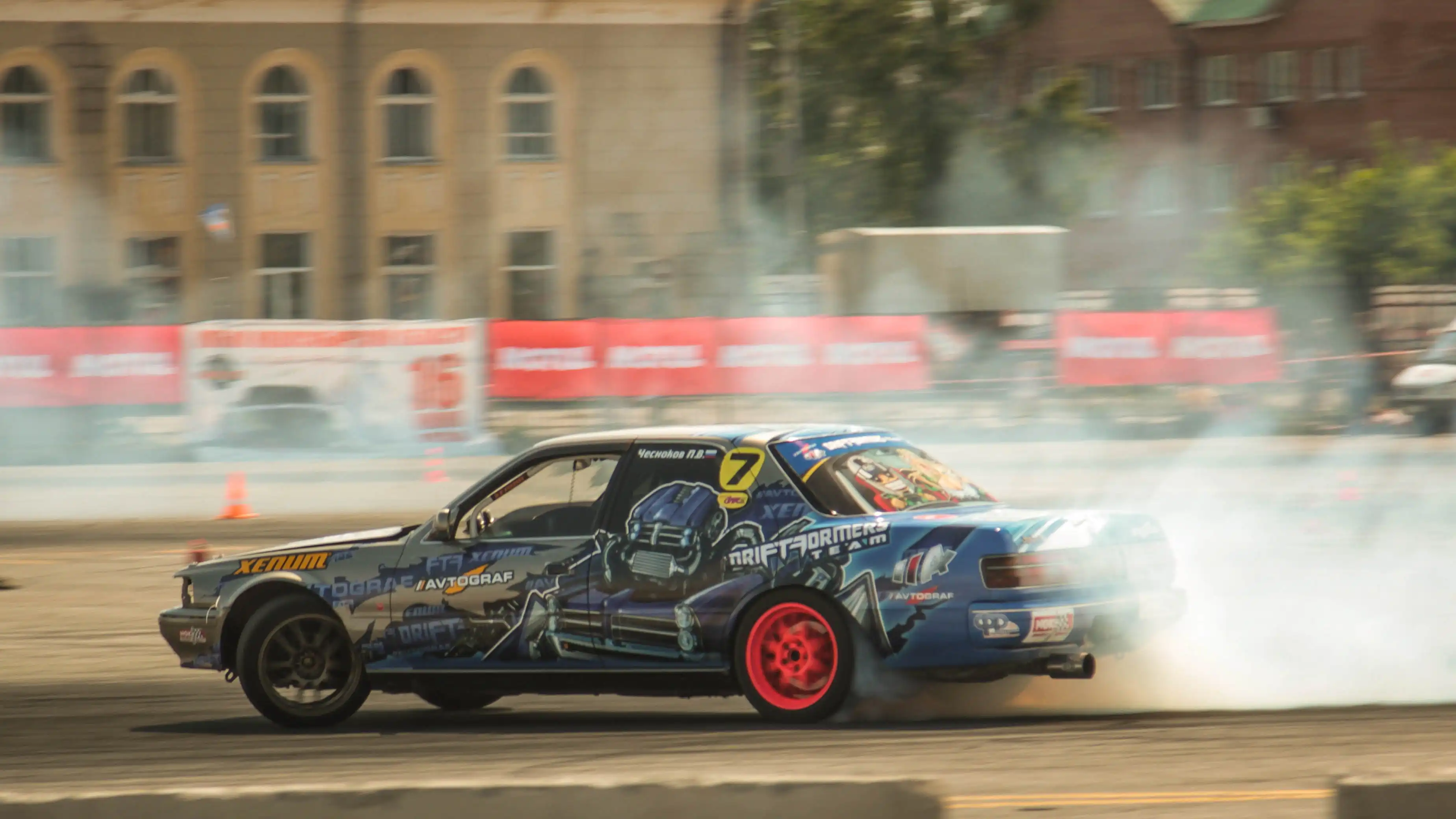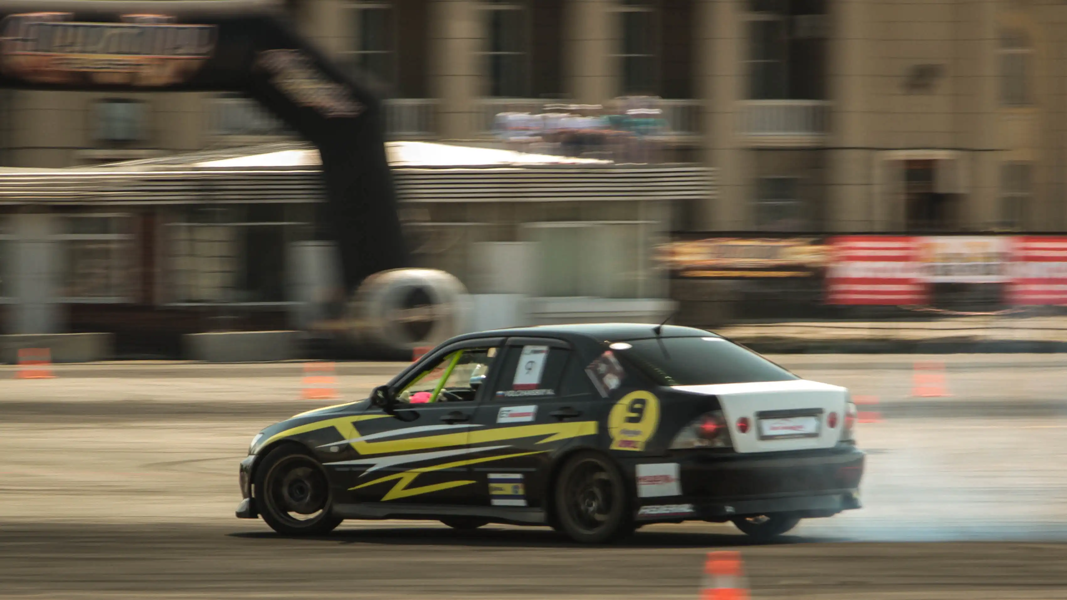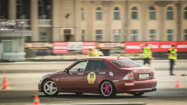 Новосибирский пилот, выезжал первый раз чтоли (непомню точно) Сток мотор/подвеска/коробка, выдернут салон и поставлен вварной каркас. Дрифт тихий, угол небольшой, но ехал стабильно! Молодец!