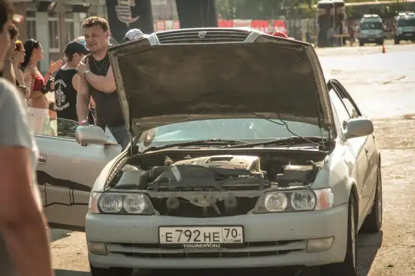 Семён из Томска! Два месяца назад собрал машину, вкорячили Джэйзет и это первый выезд на норм дрифт баттл! Первый заезд и у Сёмы чота ваще не получается(((( не может боком поставить и всё тут. Второй заезд и всё норм, Угла дал, обороты в отсечку науярил))))) Молодец! Прогресс на лицо!