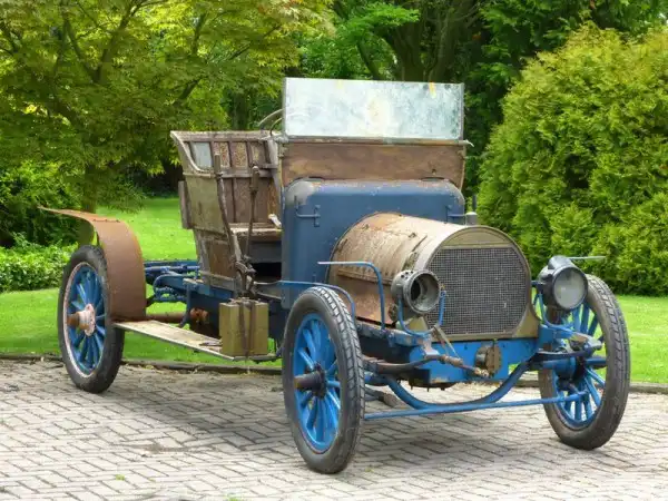 Это один из 5 сохранившихся автомобилей, его название - Spyker 15/22. Их выпускали с 1905 по 1907 годы с 3,5-литровым 4-цилиндровым мотором и 2,8-литровым чуть позже.
