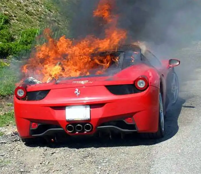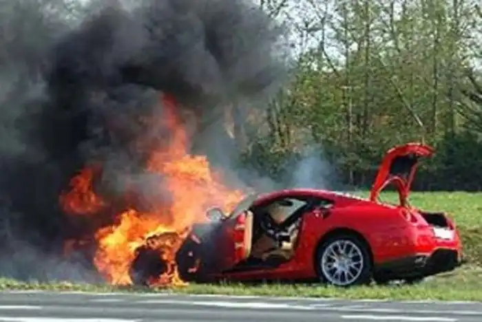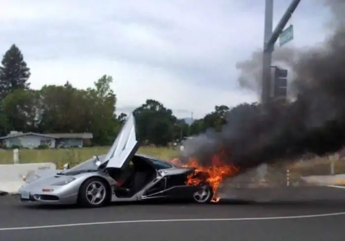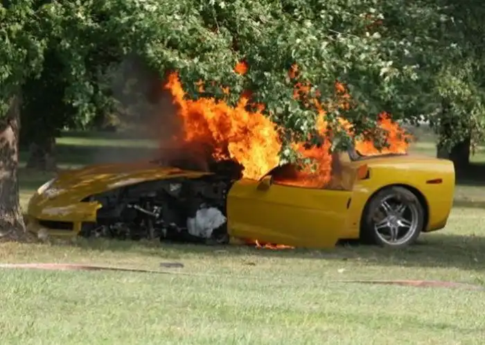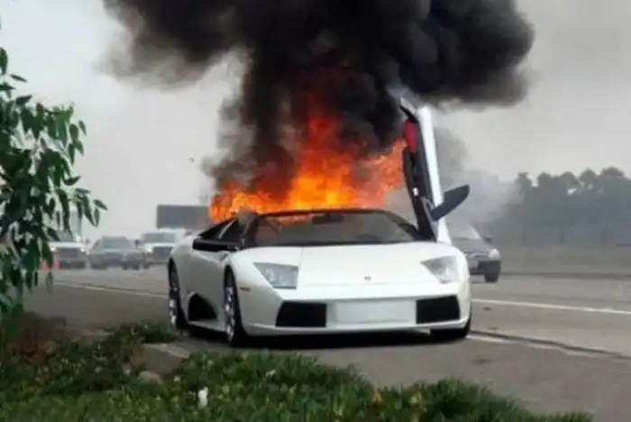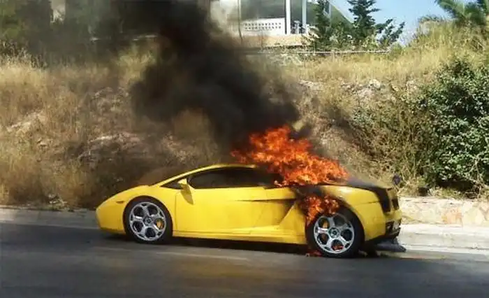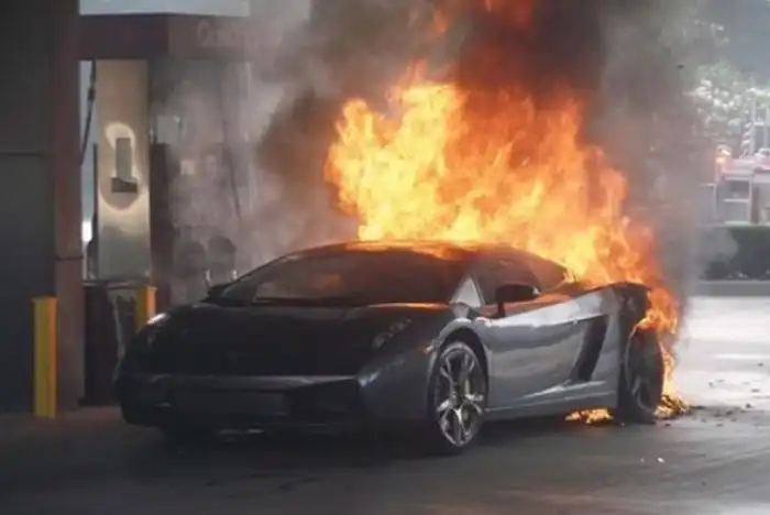 Смотрим далее на коллекцию спортивных и тюнингованных авто, объятых пламенем.