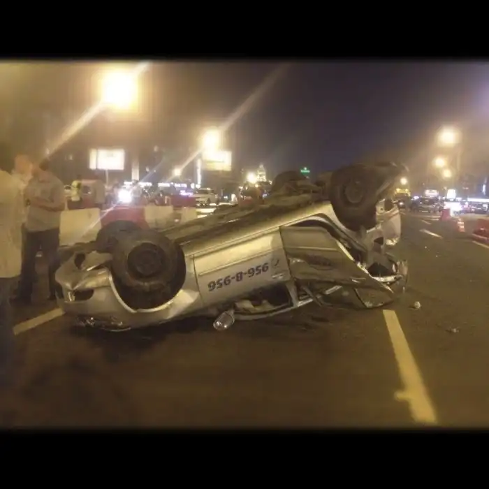 который протаранил автомобиль такси и несколько раз перевернулся на проезжей части.