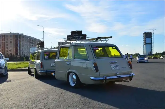Крутой тюнинг ВАЗа 2102 с прицепом