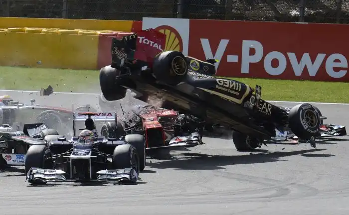 Французский гонщик Ромен Грожан на своем болиде Lotus стал виновником масштабной аварии на гонках «Формула-1».