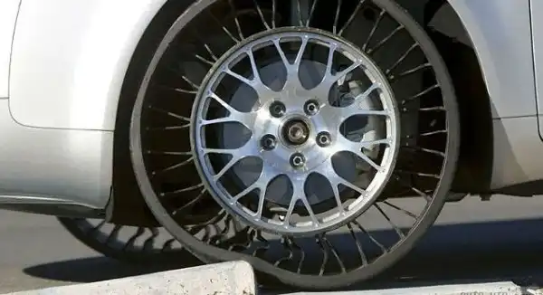 Вместо воздуха шину наполняет каркас из закручивающихся от ступицы к поверхности шины термопласто-каучуковых пластин, образующих при этом сетчатую конструкцию.