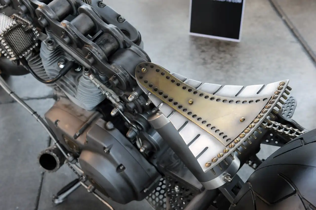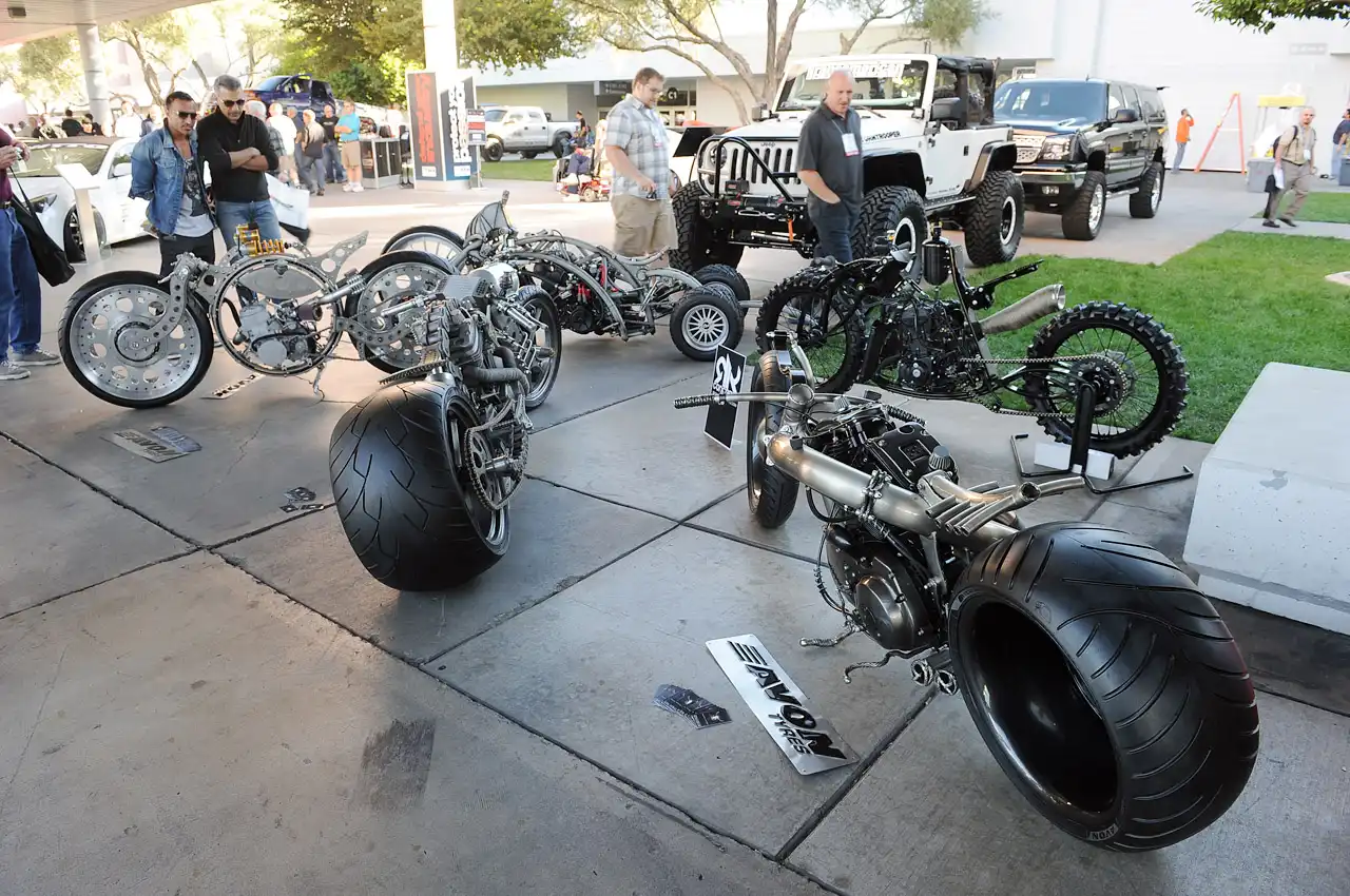Тот факт, что эти сумасшедшие 2х и 3х колёсные создания находятся в центре главного зала, конечно, не сильно произведет впечатление на вас, зрителей.Это пять концептов: The RK S, RK Spring Frame, RK Chain, RK Thing и один, кажется, не имеет названия, но есть кадр, где он сфотографирован полностью.Нет слов, дабы описать их, кроме как сказать дизайнеру, Rafik Kaissi, что он поклянётся дать прокатиться.