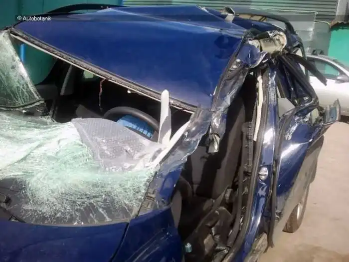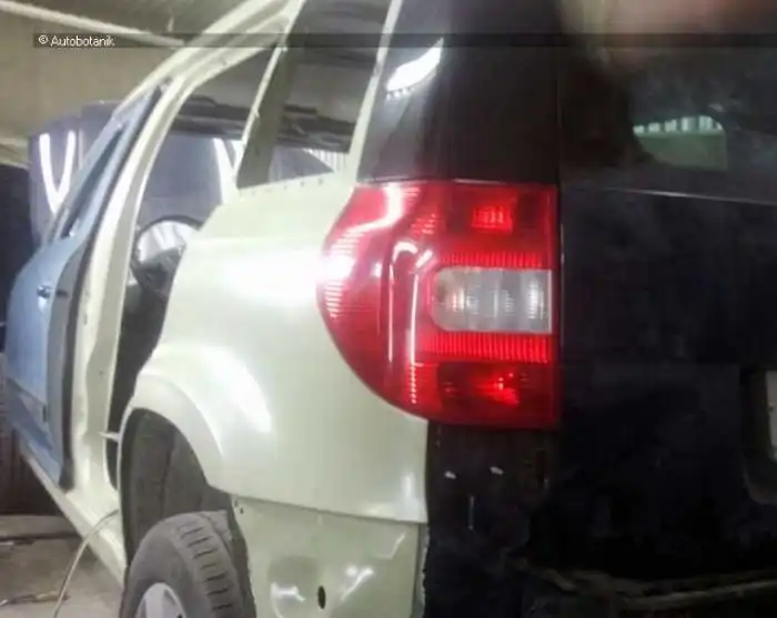 Эта несчастная Skoda Yeti побывала в серьезной аварии, влетев по инерции в борт грузовика.