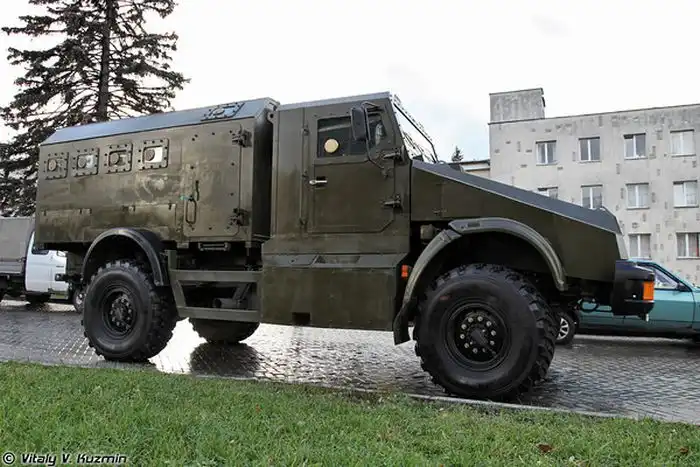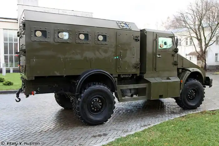 Перед вами спецавтомобиль Горец-К со специальной бронированной кабиной, которая должна защитить экипаж от взрывов.