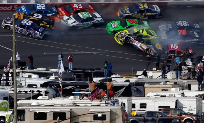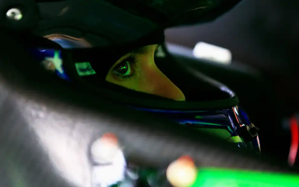 Даника Патрик в своем автомобиле в гараже во время тренировки и подготовки к гонке NASCAR в Довере, штат Дэлавер.
