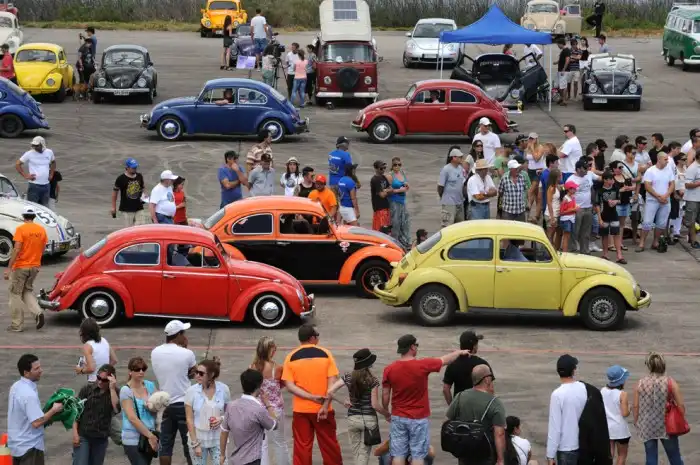 Около 200 автомобилей Volkswagen Beetles из Уругвая, Аргентины, Бразилии, Чили и Парагвая приняли участие в Южноамериканской встрече Beetles в Лагуна-дель-Сос, Уругвай.