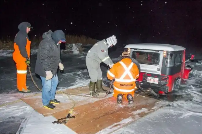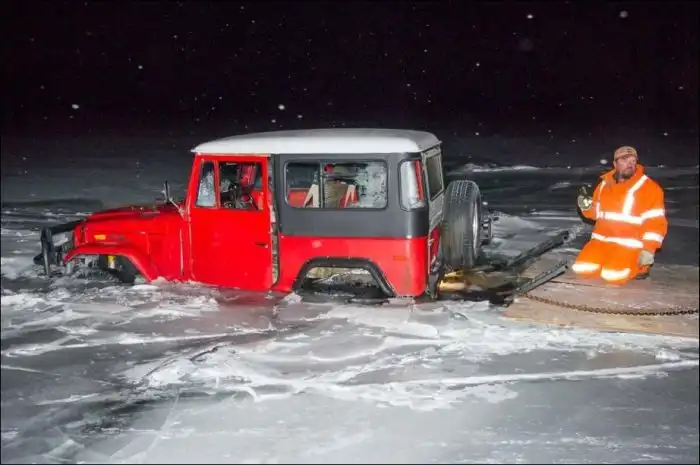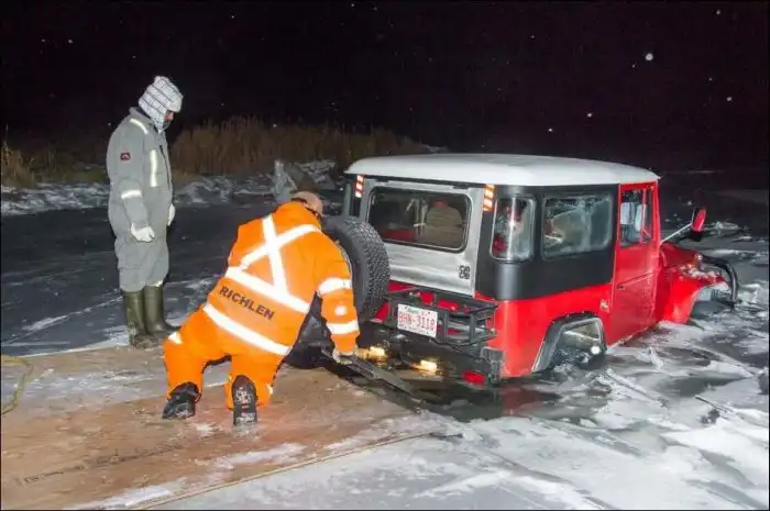 утопившего свой внедорожник в ледяных водах реки.