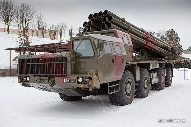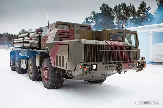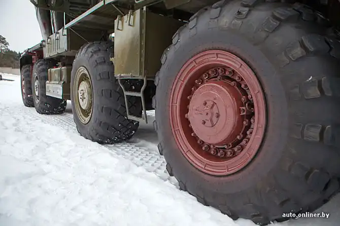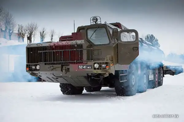 Да, военную тяжелую технику нельзя сравнивать со штатской, но очень хочется похвастаться — примерно такие же характеристики имеют двигатели, установленные в автомобилях семейства Ferrari (пускай МАЗ и не развивает 330—350 км/ч). Однако разве последние способны преодолевать снежные покровы белорусских полей с где-то присыпанными рвами шириной около трех метров или астраханские степи полигона Ашулук, местами с неровностями до 35° вверх и вниз? И все это в условиях предельных перепадов температур.