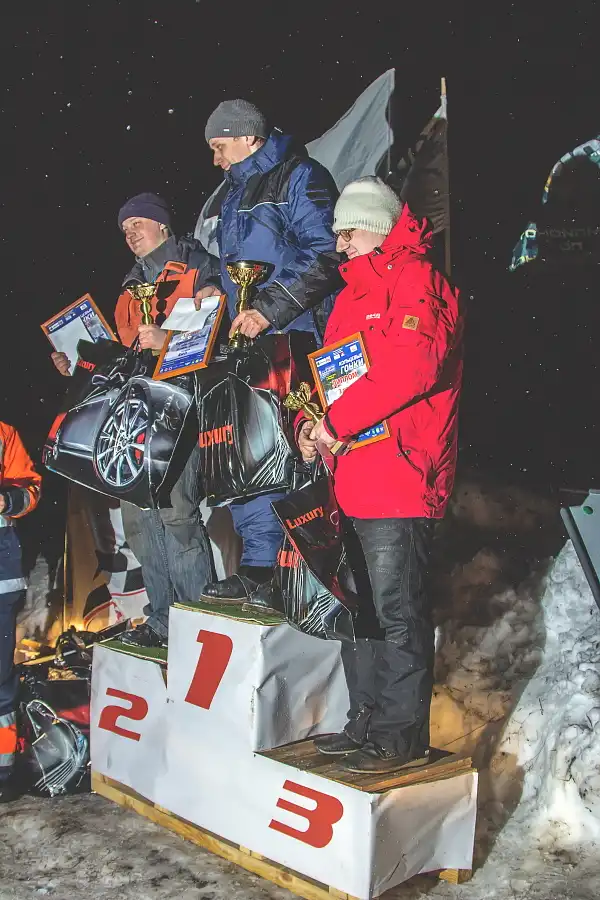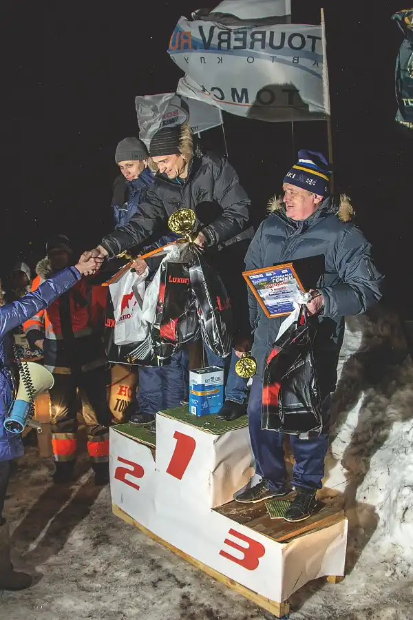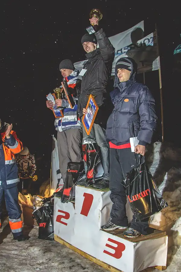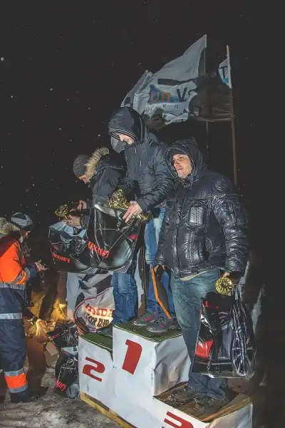 Но из-за сильно тёплой погоды в январе, лёд в центре озера "потёк" и это было бы крайне опасно для участников, поэтому парные заезды были отменены в целях безопасности и как следствие всех стали пускать по внешнему кругу и всё вытянулось по времени критично(( А награждение было поздним, поэтому призёры просто из кубков дома попили шампусик))