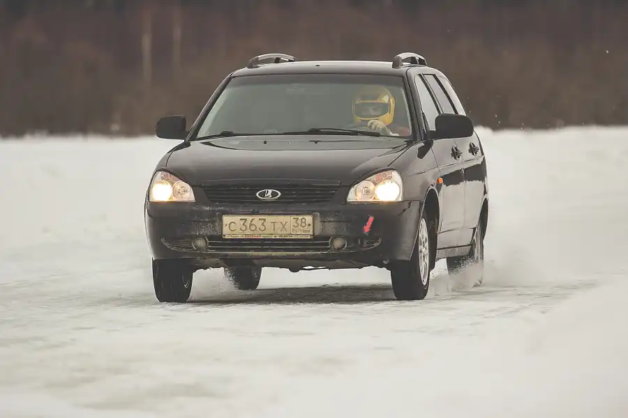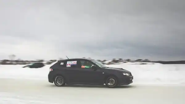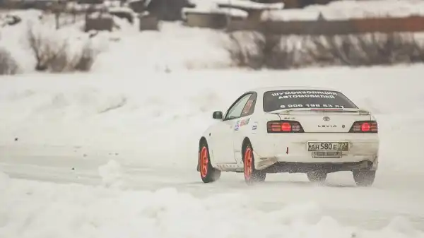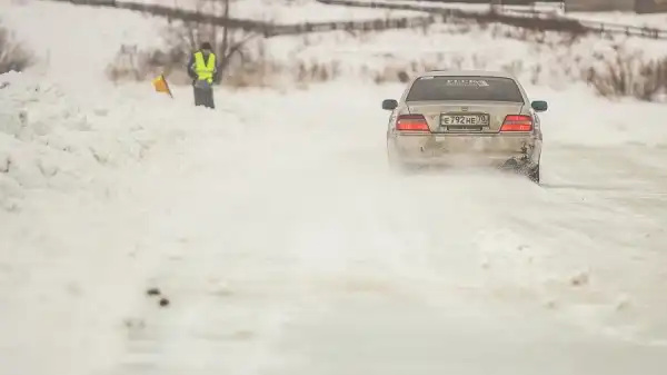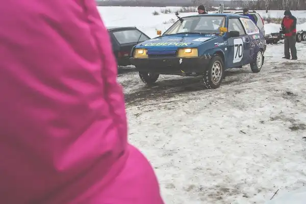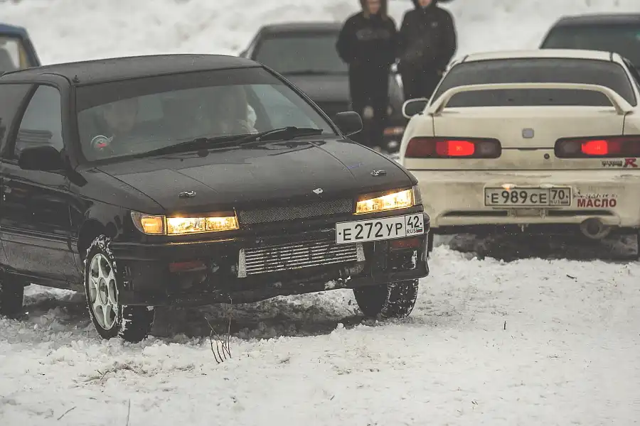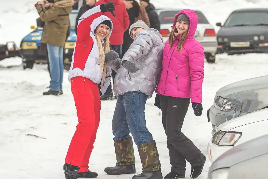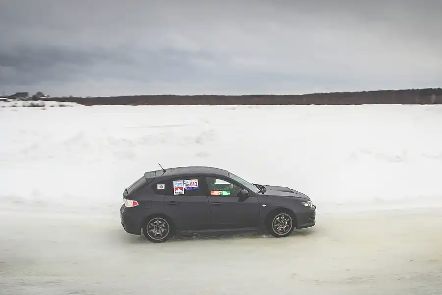 Пока все заявленные участники (а их 34 человека) параллельно проходила Джимкана (Gymkhana) это такой вид автоспортивных состязаний, в котором надо на время пройти замысловатую трассу среди конусов. В конфигурации Джимканы присутствовала змейка, два поворота и разворот на 360 град. Всё конечно усложнено покрытием - чистый лёд.