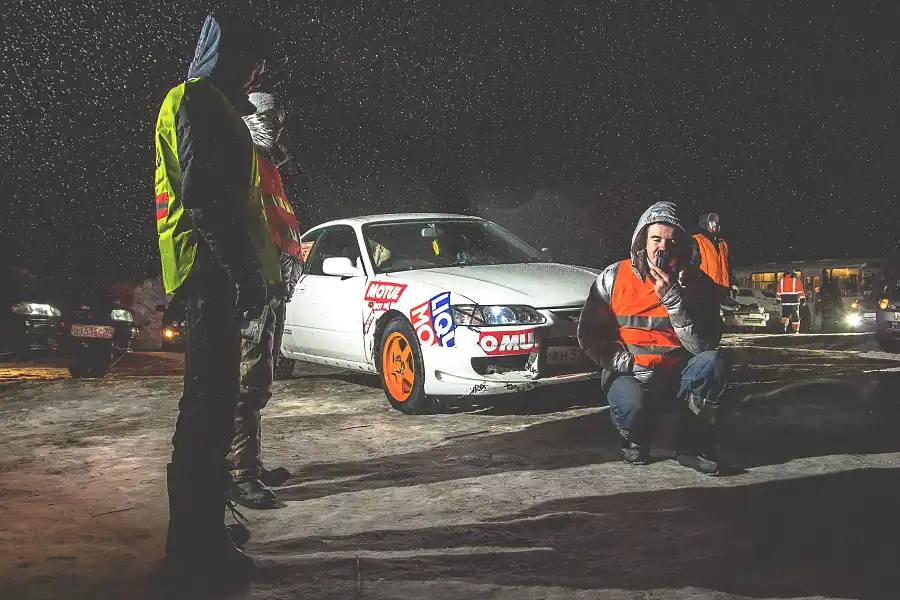 Роман Пульников, человек, который не тратит своих сил и старается посетить много соревнований. Вы видели его в моих летних фотоотчётах на дрифте в Сибе. Был в Барнауле, в Кемерово ездил на зимники, Горский трек в Новосибирске и прочие. В общем любитель автоспорта, молодец, но Ромка надо без ошибок!