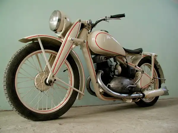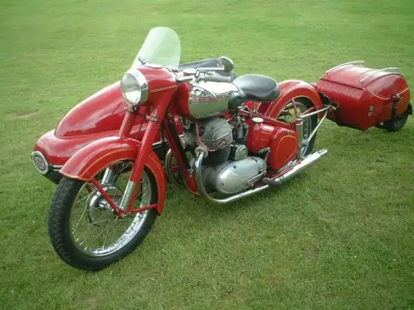 друг,я поднял свой архив.1952г Ява 500 OHC двигатель 488 куб/см 26 л.с. 4 такта сделали их немного,потому как дорогой моц был.