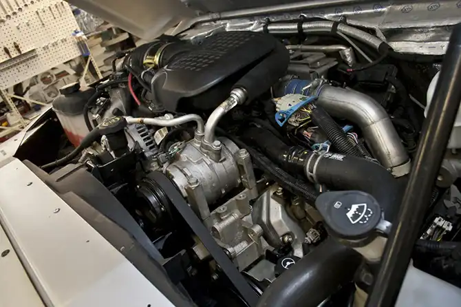 Под капотом серебристого эстонского Т98 уютно устроился гигантский 6,6-литровый турбодизель Duramax, способный на 360 л.с. при 3100 об/мин и 820 Н-м при 1600 об/мин. У стоящего рядом в ангаре темно-синего «Комбата» российской сборки — бензиновый Vortec объемом 8,1 литра (400 л.с./4200 об/м)! Вот вам и настоящие американские мускулы, работающие в тесном сотрудничестве с 6-ступенчатым «автоматом» Allison.
