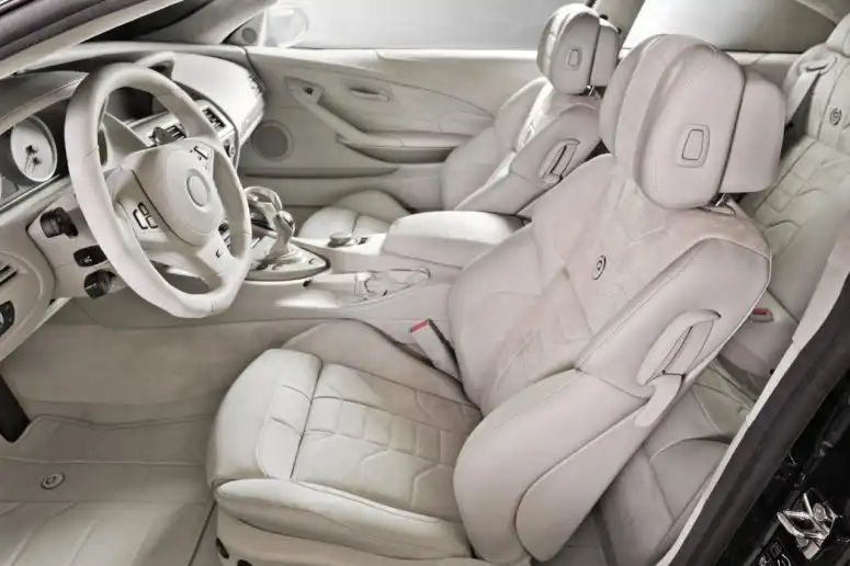 Специалисты обтянули практически все детали интерьера алькантарой - на потолке, зеркале заднего вида, стойках и боковых частях центральной консоли. Также тюнеры изменили стандартную форму подушек сидений. На центральной консоли красуется карбон. Кроме того, спидометр размечен до 400 километров/час, так как под капотом тоже произошли изменения.