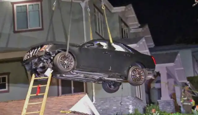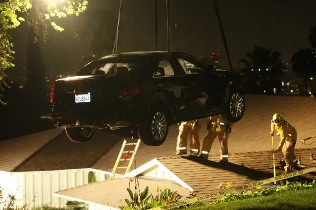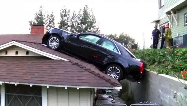 Растерявшись, Роберт Винн направил свой Cadillac прямо на стоявший впереди дом. Благодаря местному рельефу, лобового столкновения удалось избежать. Вместо этого автомобиль, задев коттедж, приземлился прямо на его крышу.